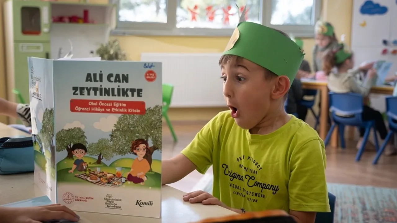 Okul Öncesi: Alican Zeytinlikte hikâye ve etkinlik kitabı, oyun kartları, öğretmen kılavuz kitabı, zeytin ağacı yaşam döngüsü afişi.
