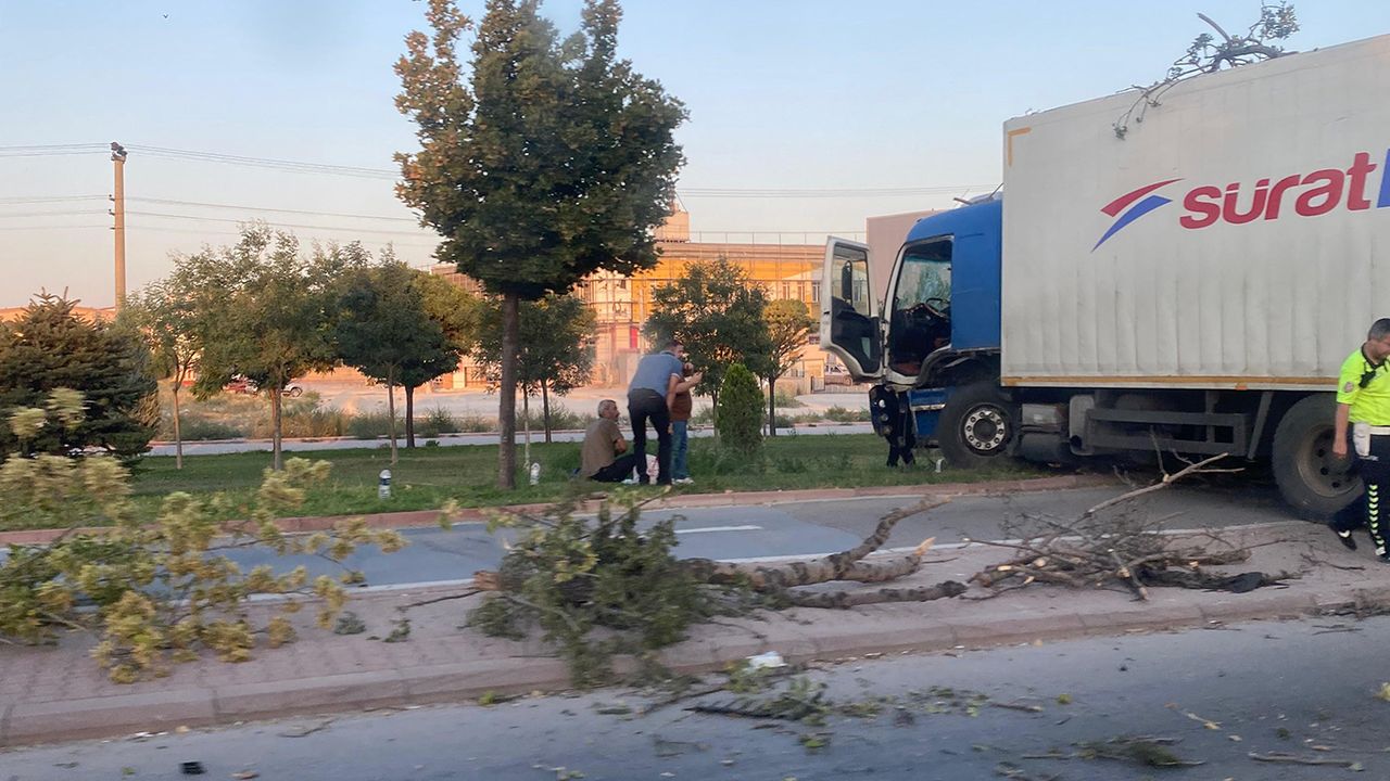 Konya-Adana Çevre Yolu'nda sabah saat 06.00 civarında meydana gelen kazada, 01 AYJ 486 plakalı tır kontrolden çıkarak yol kenarındaki ağaçlara çarptı.