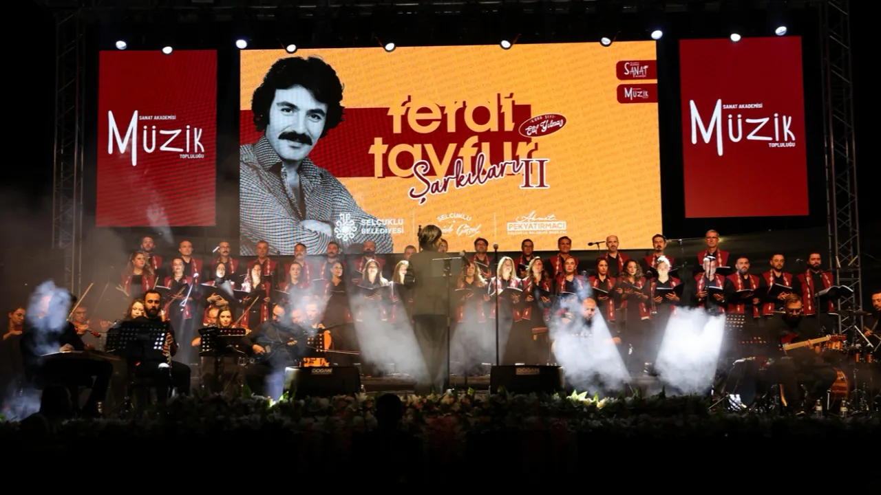 Konya'da Selçuklu Belediyesi Sanat Akademisi Müzik Topluluğu, “Ferdi Tayfur Şarkıları 2” Konseri ile sanatseverlere nostalji dolu, unutulmaz bir gece yaşattı.KONYA (İGFA) - Konya'da Selçuklu Belediyesi Sanat Akademisi Müzik Topluluğu’nun ikincisini düzenlediği “Ferdi Tayfur Şarkıları Konseri” binlerce Ferdi Tayfur hayranının katılımıyla Selçuklu Kongre Merkezi Açık Hava Sahnesi’nde gerçekleştirildi.