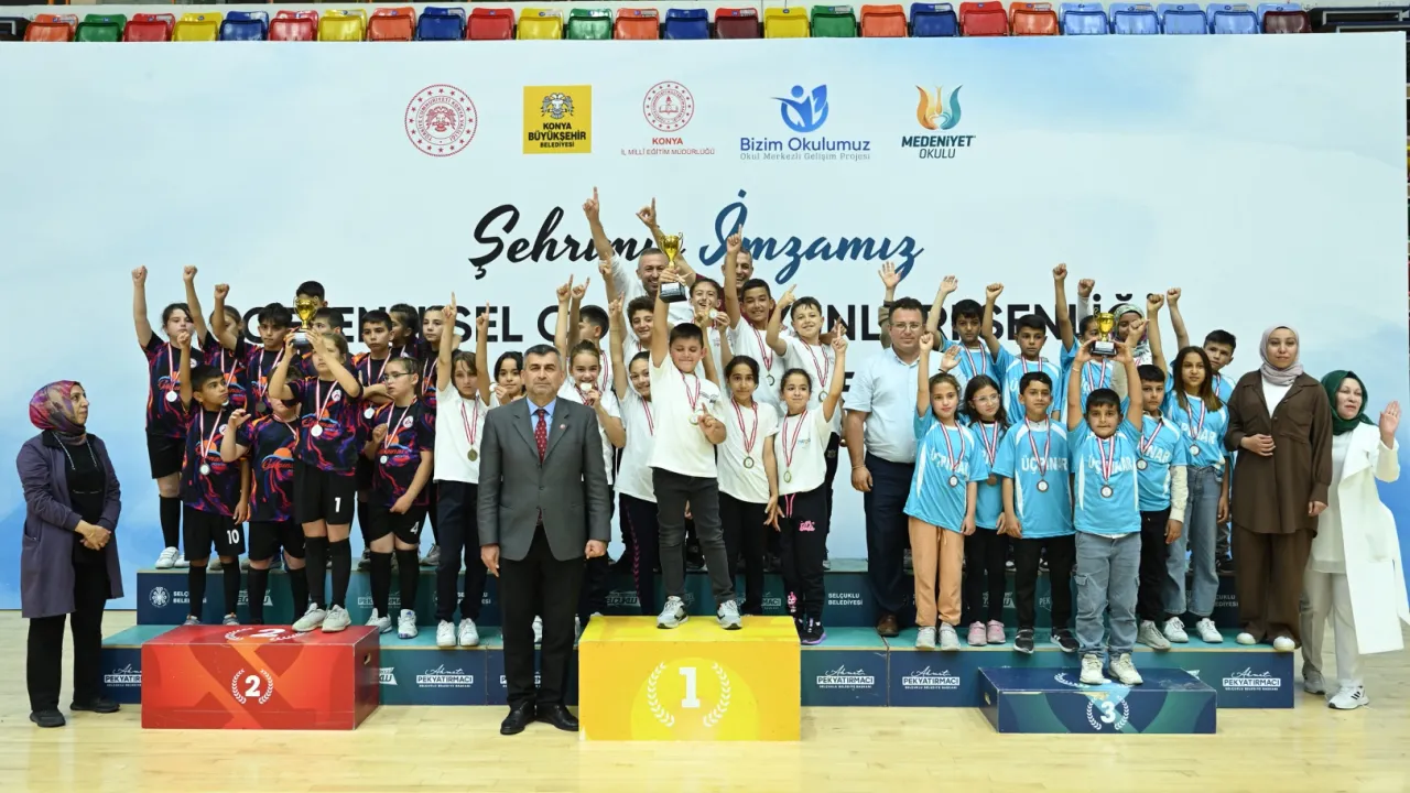 Konya Büyükşehir Belediyesi ve İl Milli Eğitim Müdürlüğü iş birliğiyle yürütülen “Şehrimiz İmzamız” projesi kapsamında 31 ilçedeki ilkokul 3. ve 4. sınıflar ile ortaokul 5. ve 6’ncı sınıflara yönelik düzenlenen “Geleneksel Çocuk Oyunları” İl Finali’nde dereceye giren öğrencilere ödülleri verildi.KONYA (İGFA) - Konya Büyükşehir Belediyesi tarafından 31 ilçedeki ilkokul 3. ve 4. sınıflar ile ortaokul 5. ve 6 sınıflara yönelik düzenlenen “Geleneksel Çocuk Oyunları” İl Finali büyük heyecana sahne oldu.