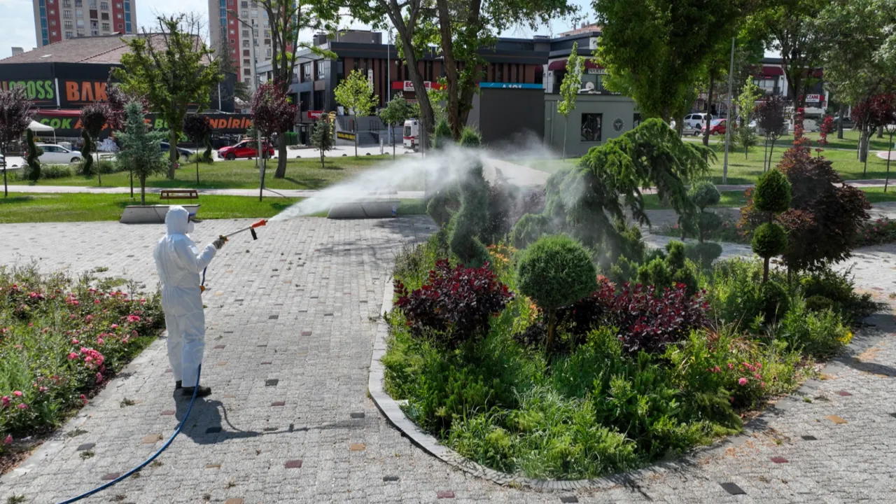 Konya'da Selçuklu Belediyesi Park ve Bahçeler Müdürlüğü ekipleri tüm ilçede haşerelere karşı periyodik olarak ilaçlama çalışmalarını sürdürüyor.KONYA (İGFA) - Selçuklu’da ilaçlama çalışmaları hava sıcaklarının artmaya başlamasıyla hızlandı. Selçuklu Belediyesi Park Bahçeler Müdürlüğü ekipleri vatandaşların daha konforlu bir mevsim geçirebilmeleri adına önlem almaya devam ediyor. Bu çerçevede haşerelerin ortaya çıkardığı olumsuz şartların önlenmesi için ekipler ilçe genelinde ilaçlama çalışması yapıyor.