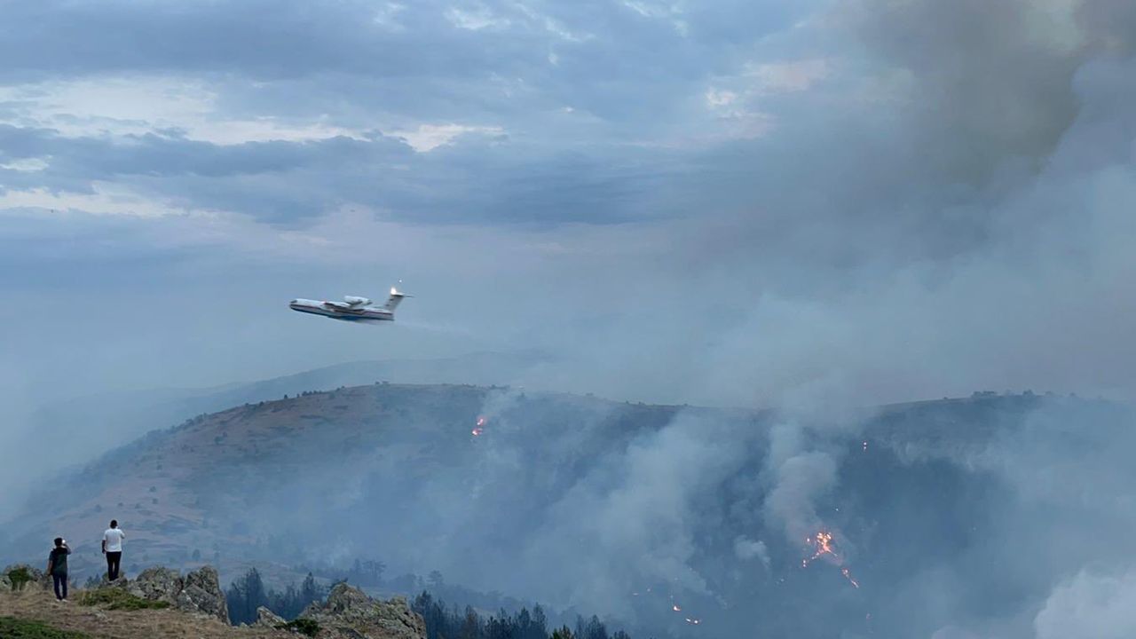 Antalya'dan gelen bir helikopterle birlikte toplam üç yangın söndürme helikopteri aktif olarak çalışmalarını sürdürüyor. Belediye'nin yol açma çalışmaları da sahada devam ediyor.