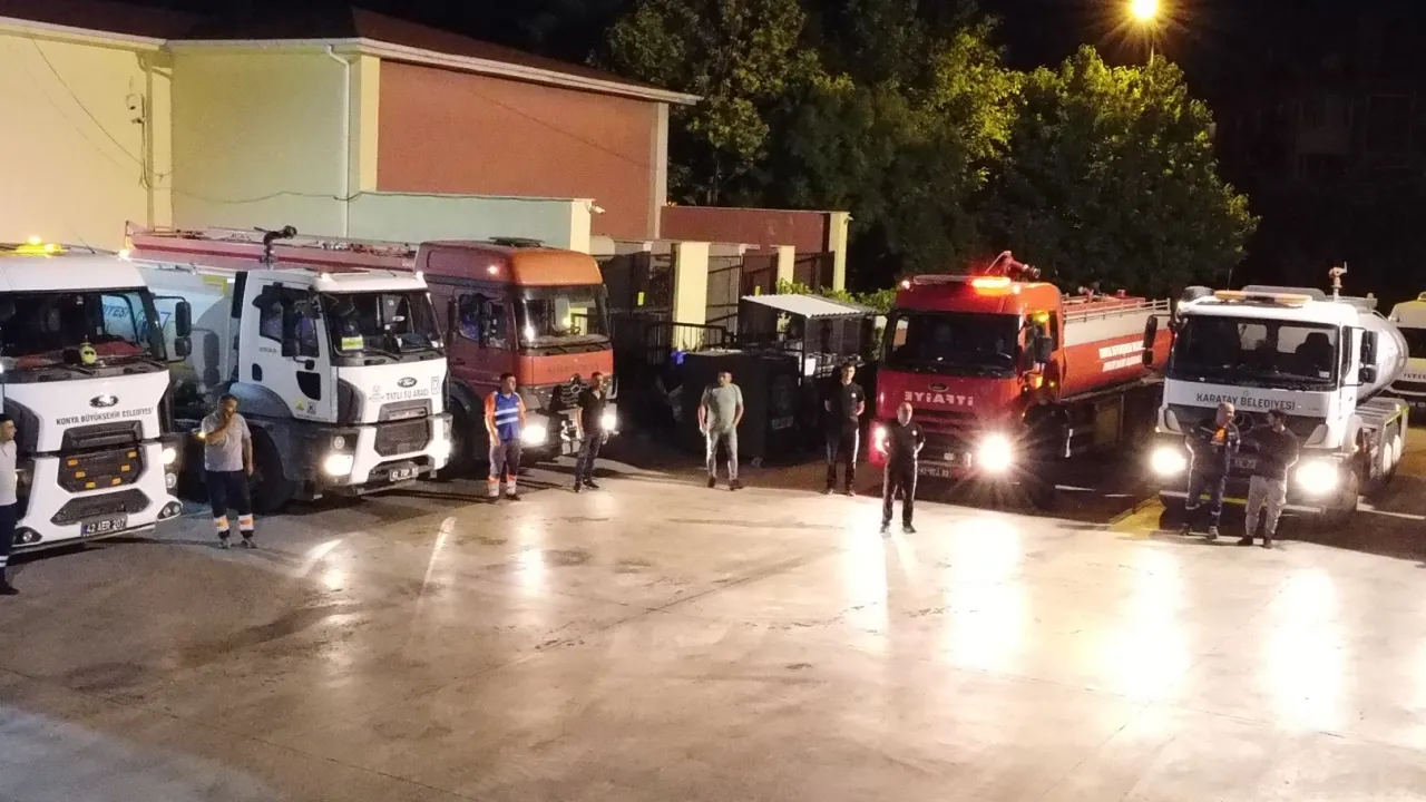 Konya Büyükşehir Belediyesi’ne ait itfaiye araçları Manisa’nın Akhisar ilçesinde devam eden orman yangınını söndürme faaliyetlerine de destek oluyor.