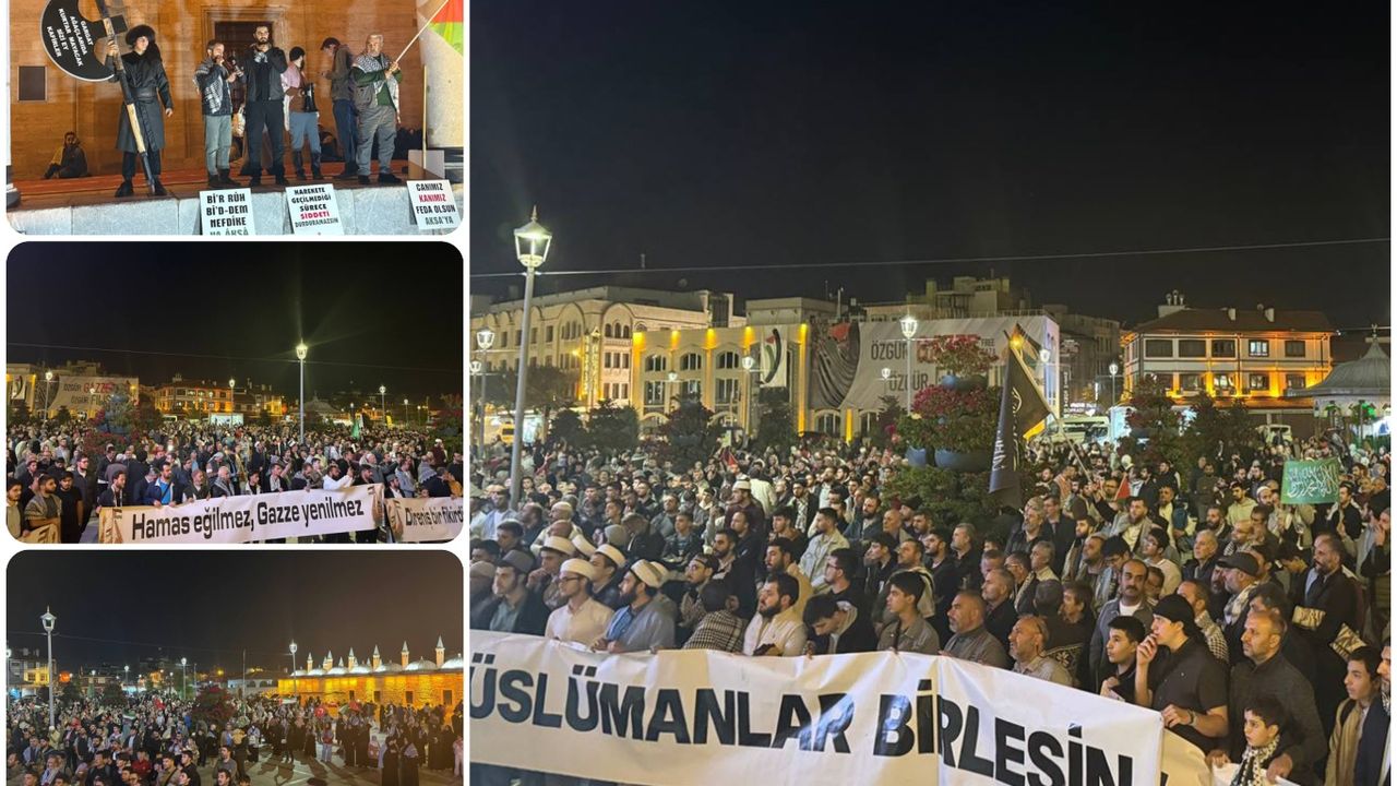 Mevlâna Meydanı’nda toplanan binlerce kişi, Gazze’ye uygulanan ablukaya, sivillere yönelik saldırılara ve uluslararası sularda yapılan hukuksuz müdahaleye karşı vicdan nöbeti tuttu. (İLKHA)