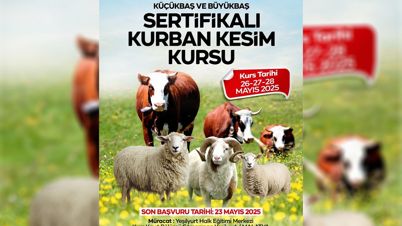 Kurban Kesim Kursuna katılacak vatandaşlar için son başvuru tarihi 23 Mayıs Cuma günü olup, kayıtlar ise Yeşilyurt Halk Eğitim Merkezi Kurs Kayıt Bölümünden alınacak. Kursa katılım sağlamak isteyen vatandaşların 0422 213 02 18 iletişim numarasından detaylı olarak bilgilendirilecekler. (İLKHA)