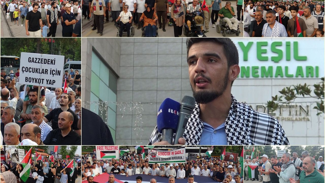 Doğa Cadde önünde toplanan binlerce kişi, ellerinde dövizler ve Filistin bayraklarıyla tekbir ve sloganlar eşliğinde Malatya AVM önüne kadar yürüdü. Yürüyüşün ardından imam Hatip Ahmet Turan Akın'ın Kur'an-ı Kerim tilaveti ile başlayan basın açıklamasını, üniversite öğrencisi Abdulselam Yakut okudu.