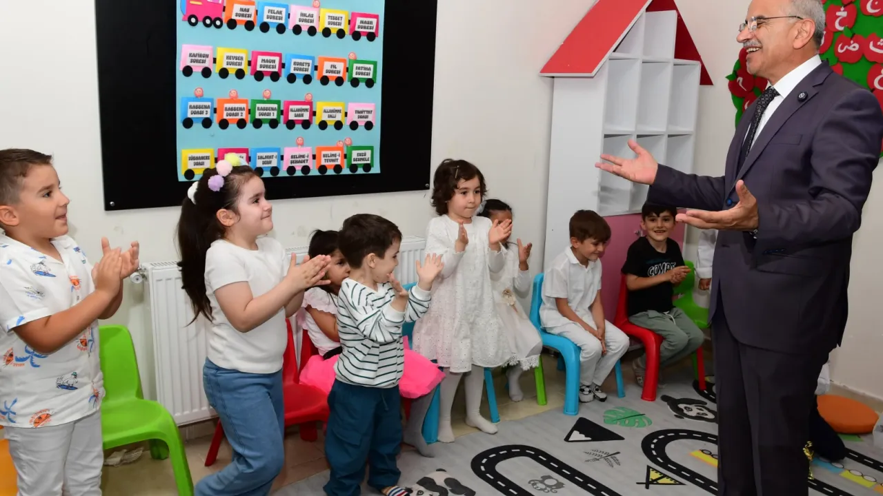İlk Karnem Etkinliği kapsamında minik öğrencilerle bir araya gelen Başkan Er, burada minik öğrencilerle sohbet etti. Daha sonra öğrencilere karnelerini ve hediyelerini takdim eden Başkan Er, okul öncesinde Nezaket Okulları’nda verilen eğitimlerin önemine dikkat çekti. Başkan Er, “Nezaket Sınıflarımız, çocuklarımızın sosyal ve ahlaki gelişimleri için büyük bir önem taşımaktadır. Bu sınıflarda verilen temel eğitim, onların özgüvenli, saygılı ve topluma duyarlı bireyler olarak yetişmelerine katkı sağlıyor. Bugün burada çocuklarımızın gözlerindeki heyecanı ve mutluluğu görmek bizler için en büyük ödüldür. Bu süreçte büyük özveriyle çalışan öğretmenlerimize ve destekleriyle her zaman yanımızda olan kıymetli velilerimize yürekten teşekkür ediyorum” dedi.