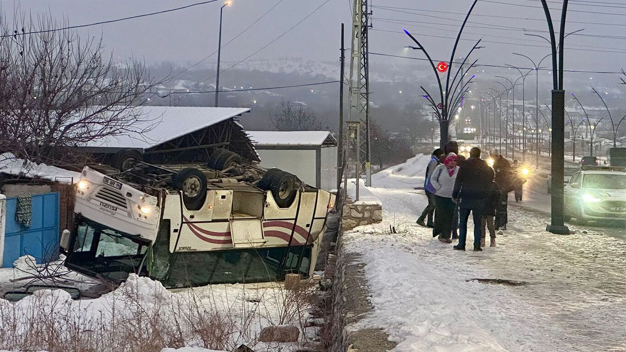Edinilen bilgiye göre, Y.O. idaresindeki 44 AHH 982 plakalı işçi servisi buzlanma nedeniyle kayarak karşı şeride geçti.