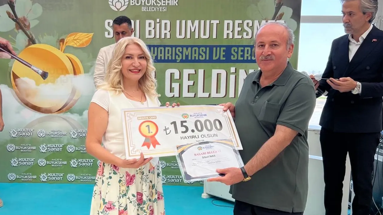 Malatya Büyükşehir Belediyesi’nin kayısı temasıyla düzenlediği “Sarı Bir Umut Resmet” adlı resim yarışmasında dereceye girenlere ödülleri verildi. Ödül alan ve sergilemeye değer görülen eserler, düzenlenen sergiyle sanatseverlerin ilgisine sunuldu.MALATYA (İGFA) - Malatya Büyükşehir Belediyesi Sanat Merkezi Fuaye Alanında düzenlenen törenle “Sarı Bir Umut Resmet” adlı resim yarışmasında dereceye girenlere ödülleri takdim edildi.