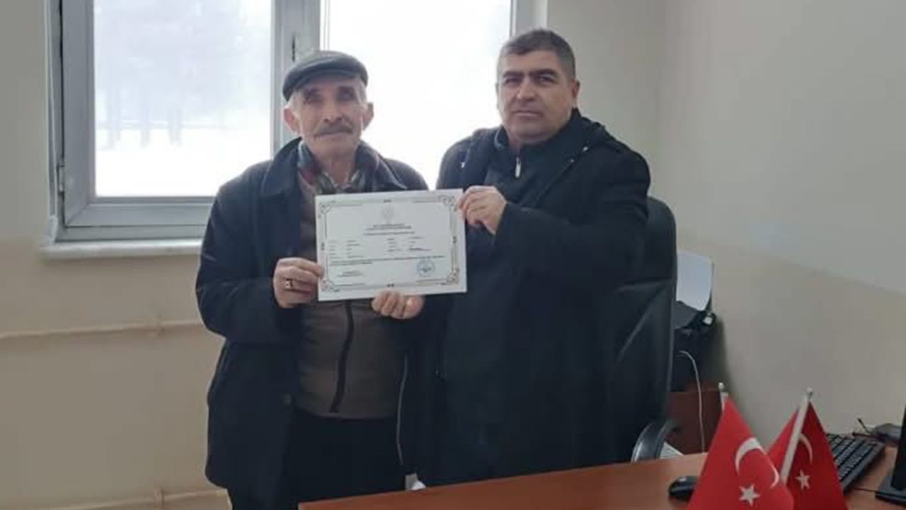 Kursa katılan Mustafa Dalkılınç (82), eğitim sürecini başarıyla tamamlayarak eğitimin her yaşta mümkün olduğunu gösterdi.