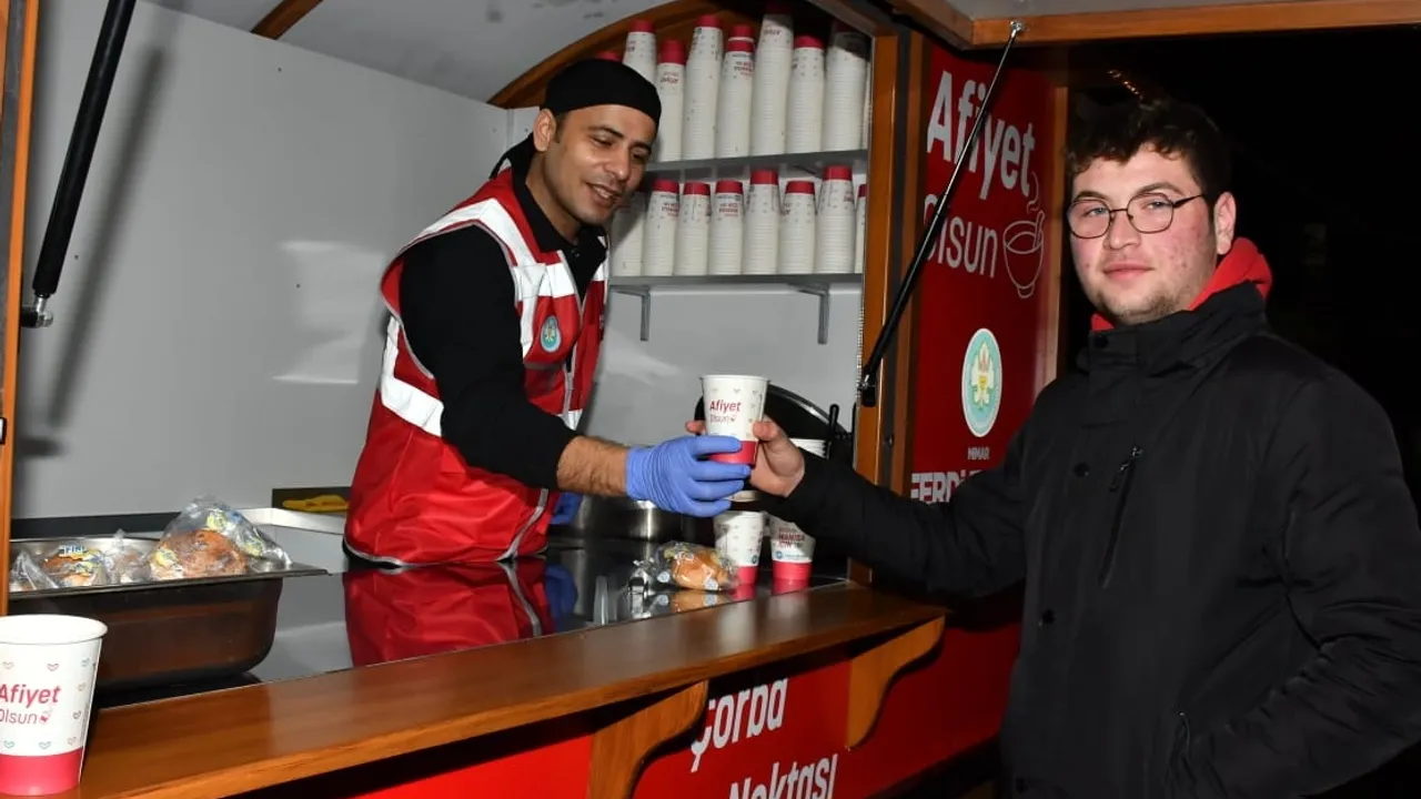 Manisa Büyükşehir Belediyesi, öğrencilere yönelik başlattığı “Günaydın Çorbası” ikramını, sabah erken saatte işe giden çalışanlar için de genişletti. İlk çorba ikramları, Tevfikiye Mahallesi Şeyh Fenari Cami önü ve eski garaj karşısındaki servis bekleme noktalarında gerçekleştirildi. 6 noktaya çıkarılan ikramlar 3 bin kişiye ulaşıyor.MANİSA (İGFA) - Özellikle soğuk kış günlerinde hem öğrencilerin hem de çalışanların içini ısıtan “Günaydın Çorbası” ikramı, şehrin farklı noktalarında sabahları sıcak bir mola imkanı sunuyor.