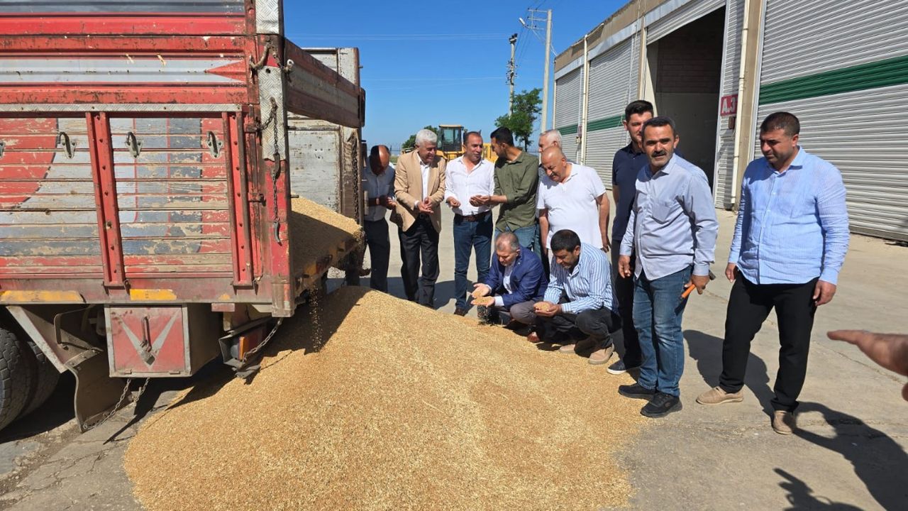 Hasattan elde edilen buğday, kamyonlara yüklenip, Kızıltepe Hububat Ticaret Merkezi'ne götürülmeye başlandı.