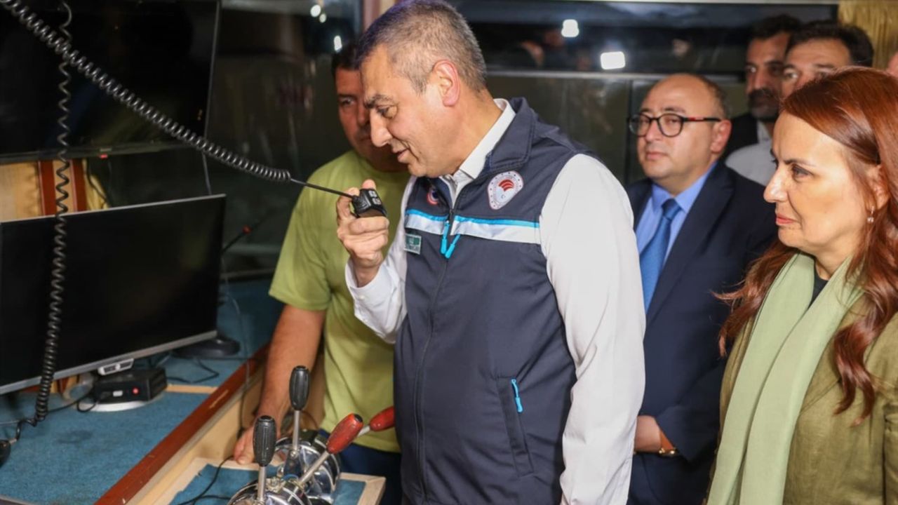 Vali Toros, burada telsizle balıkçılara seslenerek “Vira bismillah” dedi ve yeni sezonun bereketli geçmesi temennisinde bulundu. (İLKHA)