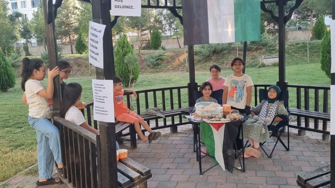 Diyarbakır'ın Kayapınar ilçesinde bir sitede yaşayan çocuklar, örnek bir dayanışma sergileyerek kendi imkânlarıyla kermes düzenledi. Satıştan elde ettikleri geliri Gazze'deki ihtiyaç sahiplerine ulaştırılmak üzere Umut Kervanı Diyarbakır Derneği'ne teslim eden çocuklar, çevredekilerin takdirini topladı.