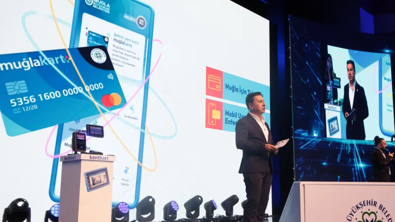 Muğla Büyükşehir Belediyesi, hayata geçireceği MuğlaKart uygulaması için Gazi Mustafa Kemal Atatürk Kültür Merkezi’nde Dijital Dönüşüm Lansmanı’nı düzenledi. Büyükşehir Belediyesi, MuğlaKart uygulamasıyla ulaşım, sosyal yardımlar ve ödemeleri tek kartta birleştirerek kentte dijital dönüşümü başlatıyor.MUĞLA (İGFA) - Kıyı Ege Belediyeler Birliği ve Muğla Büyükşehir Belediye Başkanı Ahmet Aras’ın seçim vaatlerinden biri olan MuğlaKart uygulaması için Gazi Mustafa Kemal Atatürk Kültür Merkezi’nde Dijital Dönüşüm Lansmanı yapıldı.