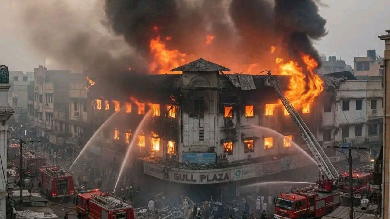 Yangın, Cumartesi gecesi geç saatlerde Pakistan'ın güneyindeki liman kenti Karaçi'deki MA Jinnah Caddesi üzerinde bulunan ve 1200'den fazla mağazaya ev sahipliği yapan çok katlı bir alışveriş merkezi olan Gul Plaza'da çıktı.
