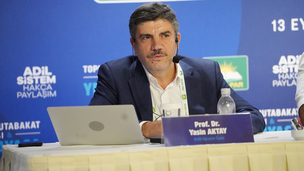 Aktay, "Toplum bazen sizi hayal kırıklığına uğratacak kadar sizden uzaktır; hayallerinizden, beklentilerinizden, inançlarınızdan uzaktır. Zannetmeyin ki siz o topluma birtakım şeyler dayatılmış. 'Dayatılmasaydı bizden olurdu' diye bir şey yok; dayatılmasaydı da yine bizden olmazdı. Toplumda biz bir unsuruz, sadece bir örneğiz. Daha doğrusu bir örneklemiz, bir kesitiz. Toplumun bir derdi yok. Yani toplumda insanlar sizin dertlerinizden çok uzak dertlere sahiptirler. Onun için, bir bakıma da siyaset, derdimizi başkalarının derdi haline getirme sanattır. İnsanların bizim derdimizi dert haline getirmesini sağlayabilme sanatıdır. Bunun ne kadar başarabilirsek o kadar iyi bir siyaset yapmış oluyoruz. İrşat da bunun için yapılır, tebliğ de bunun için yapılır. İnsanlara 'Ey insanlar dert ettiğiniz şeyler dert değil, asıl dert 'Aha da budur' deyip, insanların gündemine Gazze'yi sokabilmektir. Bugün o kadar insan katlediliyor Gazze'de, kiminin umurunda…" şeklinde konuştu.