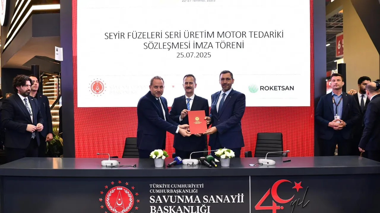 IDEF’25’te Cumhurbaşkanlığı Savunma Sanayii Başkanlığı (SSB), Roketsan ve Kale Jet Motorları arasında imzalanan yeni sözleşme ile Türk mühendislerin imzasını taşıyan seyir füzeleri, yerli motorlar ile donatılacak. SSB Başkanı Prof. Dr. Haluk Görgün’ün de katılımıyla düzenlenen törende, Roketsan Genel Müdürü Murat İkinci ve Kale Jet Motorları Yönetim Kurulu Başkanı ve Kale Grubu Yönetim Kurulu Başkan Vekili Osman Okyay tarafından imzalanan “Seyir Füzeleri Seri Üretim Motor Tedariki İş Birliği Protokolü” ile Roketsan’ın seyir füzelerindeki en önemli parçalardan biri artık yerli ve milli imkanlarla karşılanacak.