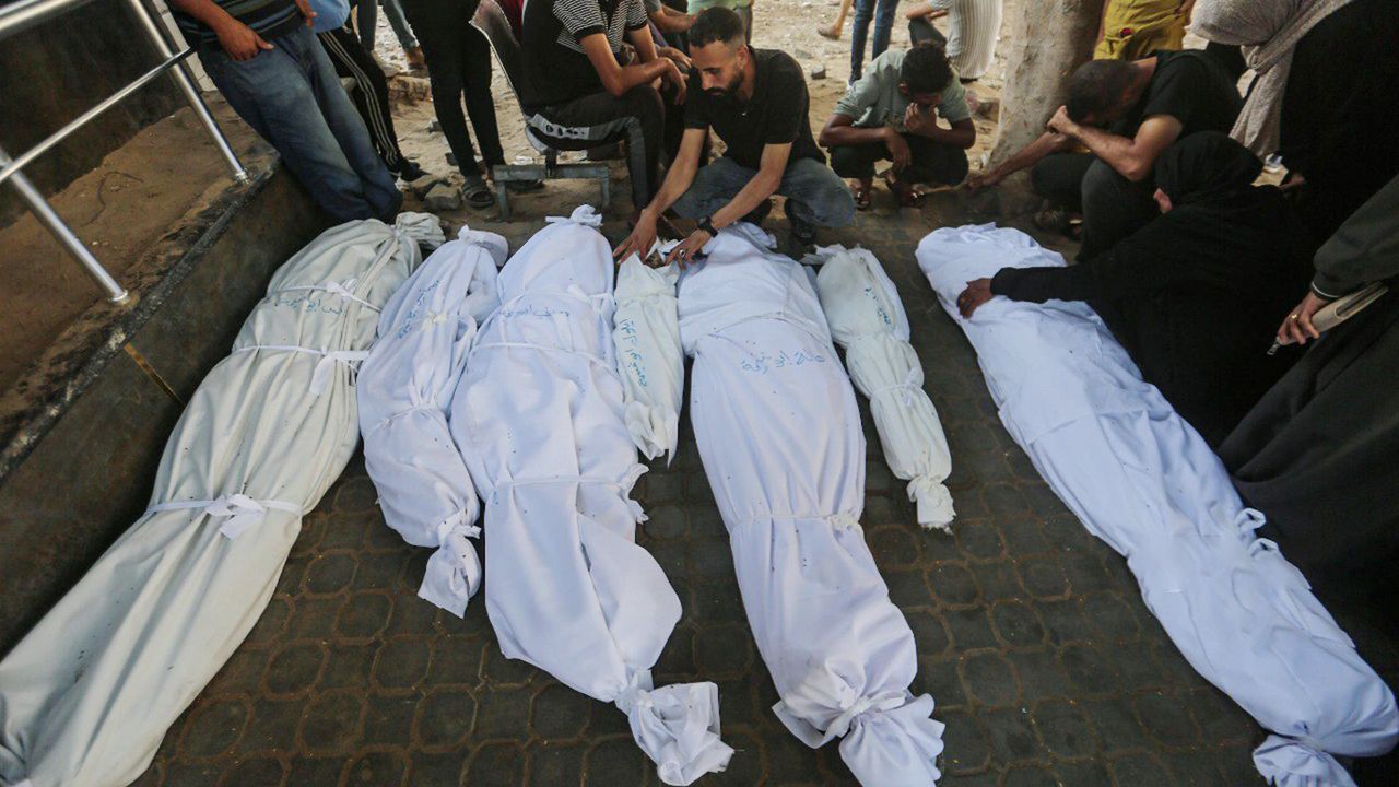 Orta Gazze'deki Deyr el-Belah Kampı'nda bir apartman siyonist rejim uçakları tarafından hedef alındı; saldırıda üç kişi şehit oldu, cenazeleri Şehitler El-Aksa Hastanesi'ne getirildi.