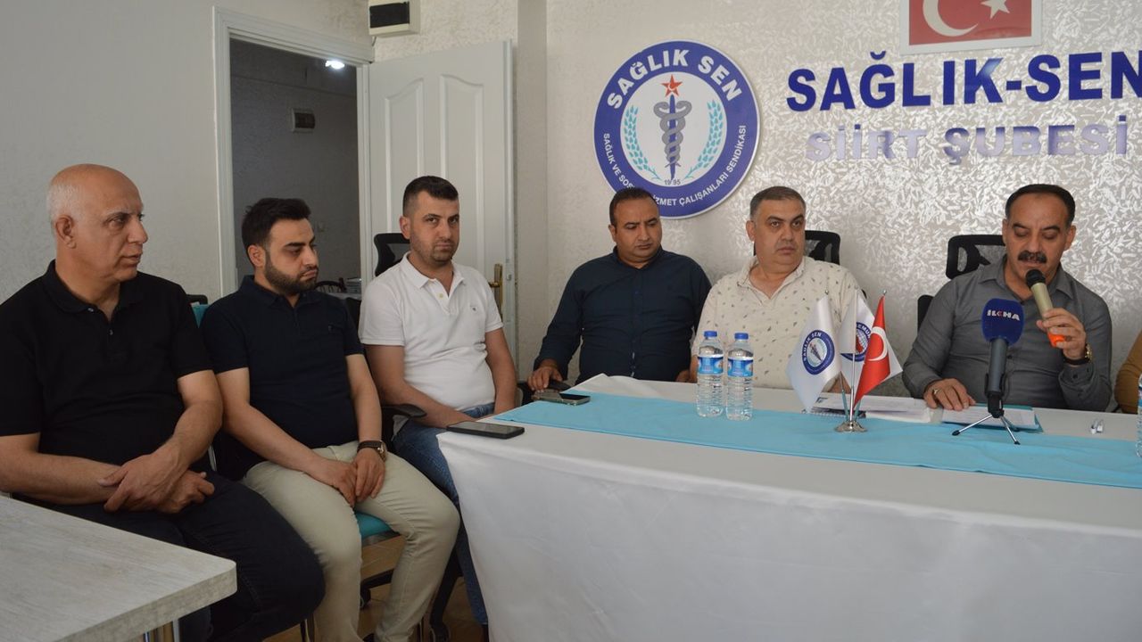 8.Dönem Toplu Sözleşme sürecine yaklaşılırken, Sağlık-Sen Siirt Şubesi, sağlık ve sosyal hizmet çalışanlarının yaşadığı sorunlara dikkat çekmek ve hazırladıkları talepleri kamuoyuyla paylaşmak üzere basın toplantısı düzenledi.