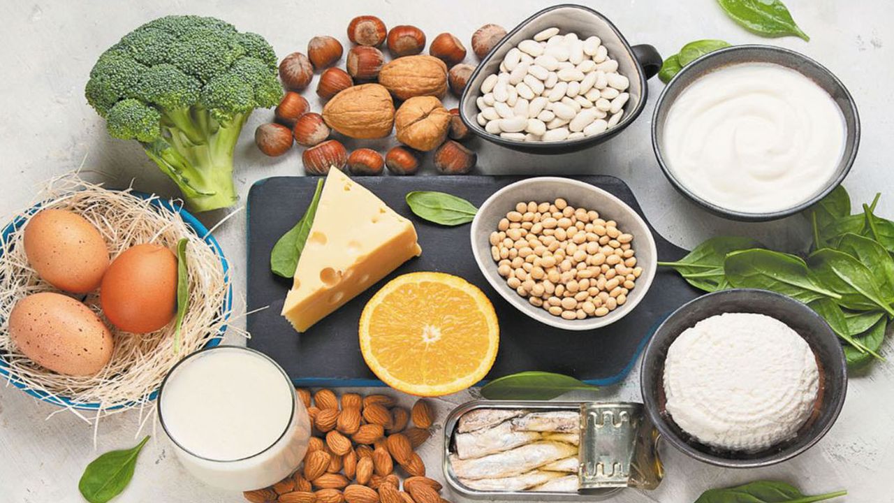Süt ürünleri, soya fasulyesi, fıstık, ceviz, badem, lahana, brokoli, balık, kurutulmuş meyveler, kuru baklagiller, mercimek, su ürünleri, tavuk, turunçgiller, kivi, incir, çilek, domates, karnabahar, biber, zeytinyağı, yeşil sebzeler, ıspanak, bamya, brokoli, şalgam, pancar, yeşil çay, kırmızı et, yumurta, muz.