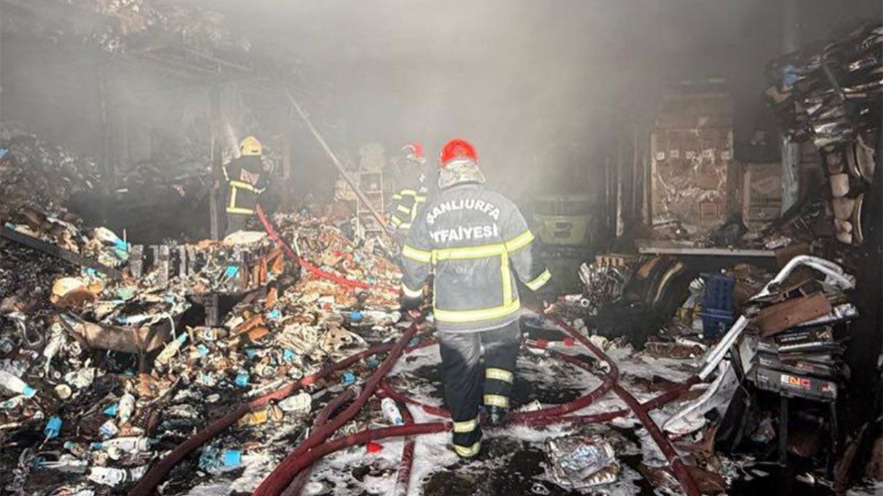 Maddi hasarın oluştuğu depoda hasar tespit çalışmalarının sürdüğü bildirildi. (İLKHA)
