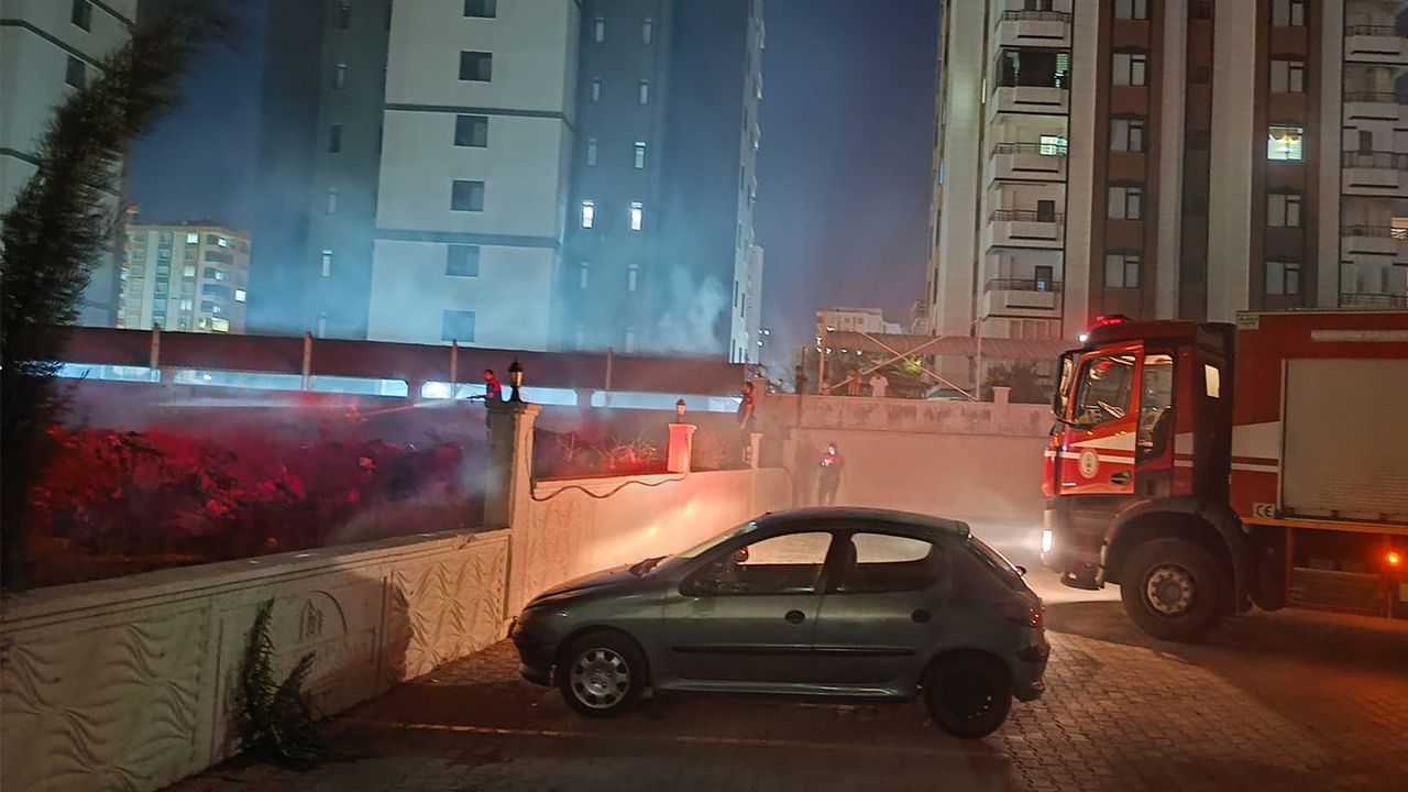 Rüzgârın etkisiyle yayılan alevler, site otoparkının hemen yanına kadar ilerledi.