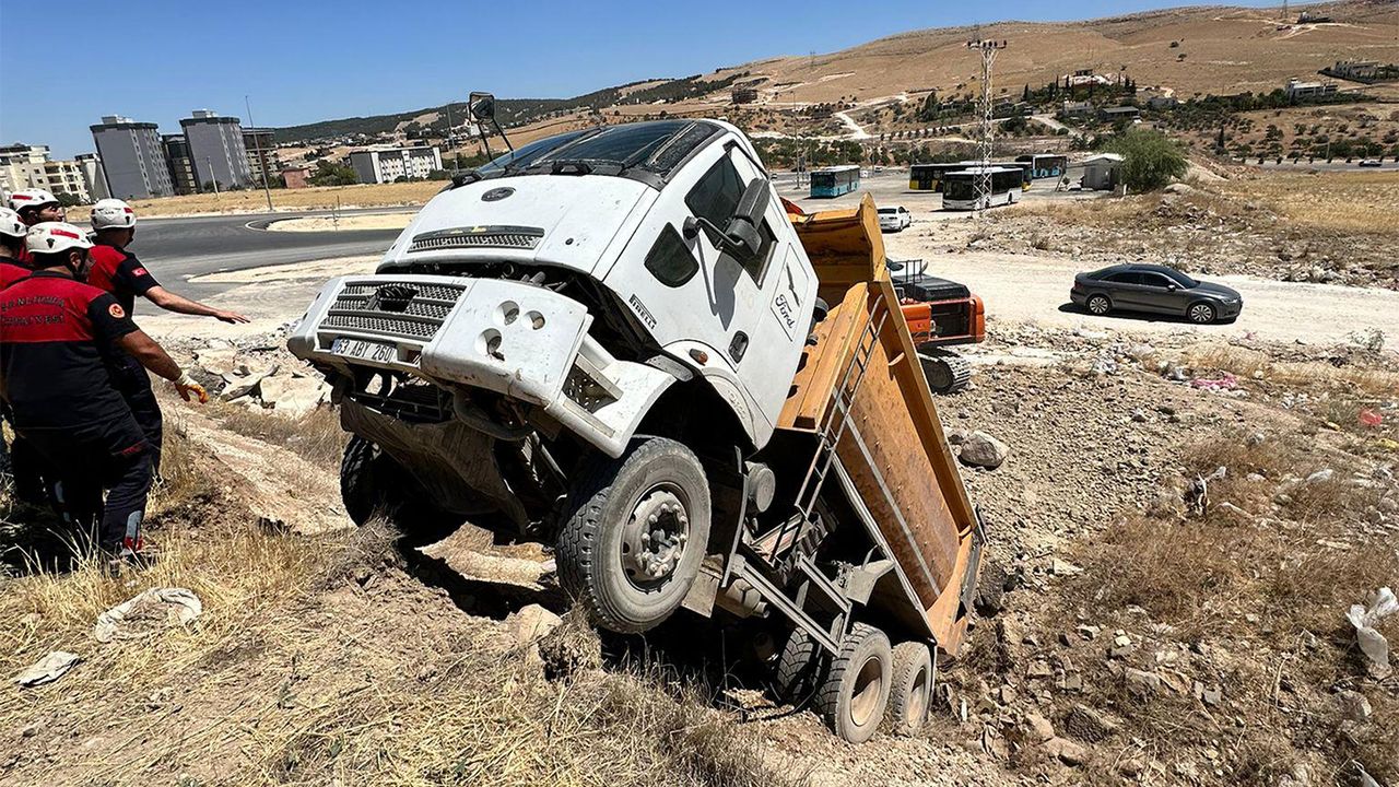 Edinilen bilgilere göre, sürücüsünün kontrolünden çıkan hafriyat kamyonu, henüz belirlenemeyen bir nedenle yoldan çıkarak şarampole yuvarlandı.