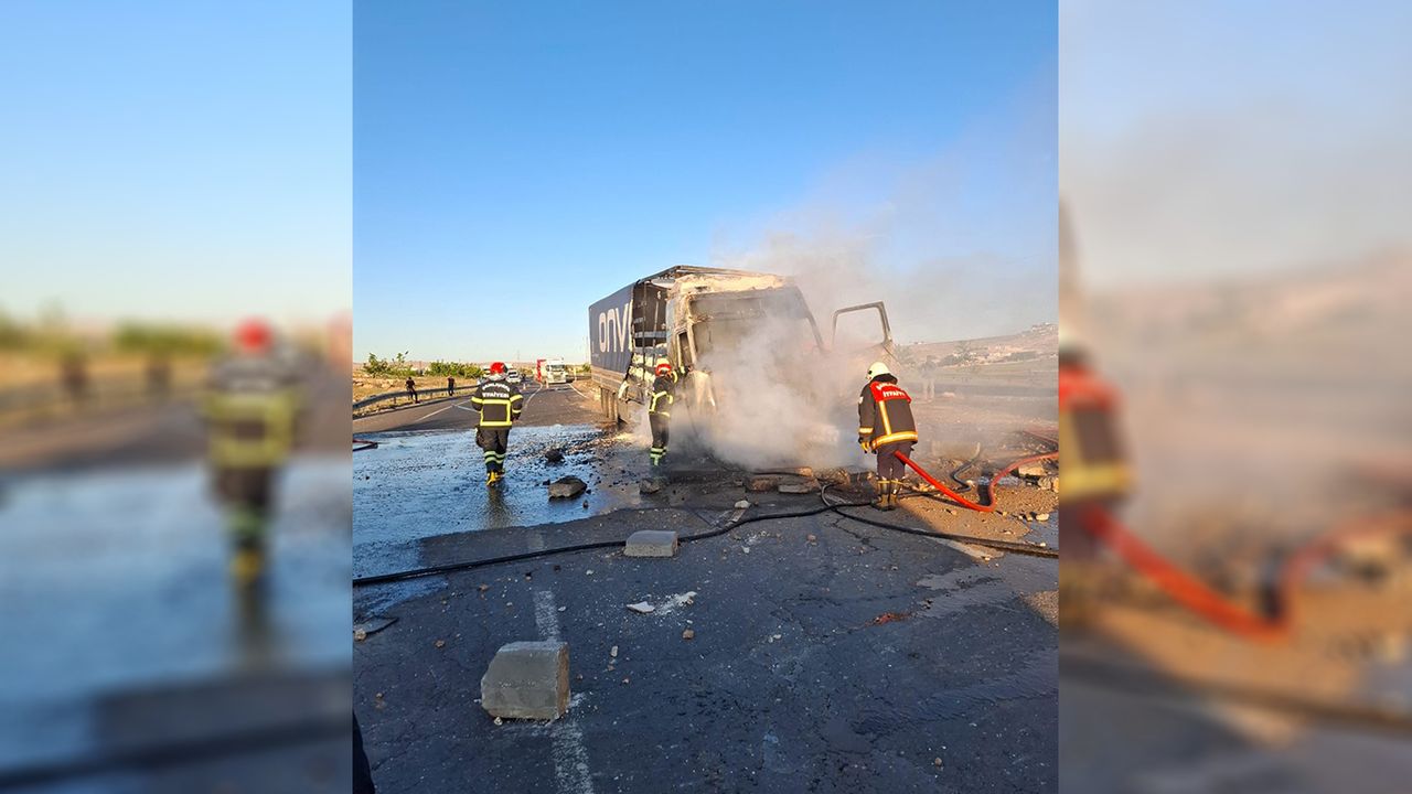 Edinilen bilgilere göre, 27 ADE 372 plakalı kamyon seyir halindeyken henüz belirlenemeyen bir nedenle yanmaya başladı.