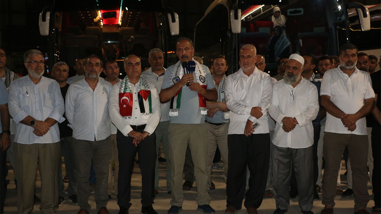 Konvoy, yapılan duanın ardından otobüslere binilerek, salavatlar eşliğinde yola çıktı. (İLKHA)