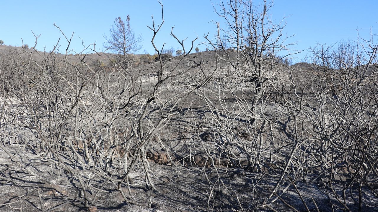 Öte yandan söndürme çalışmalarının tamamlandığı ve onlarca dönüm ormanlık alanın yok olduğu yangının ardından geriye sadece kül yığınları kaldı. (İLKHA)