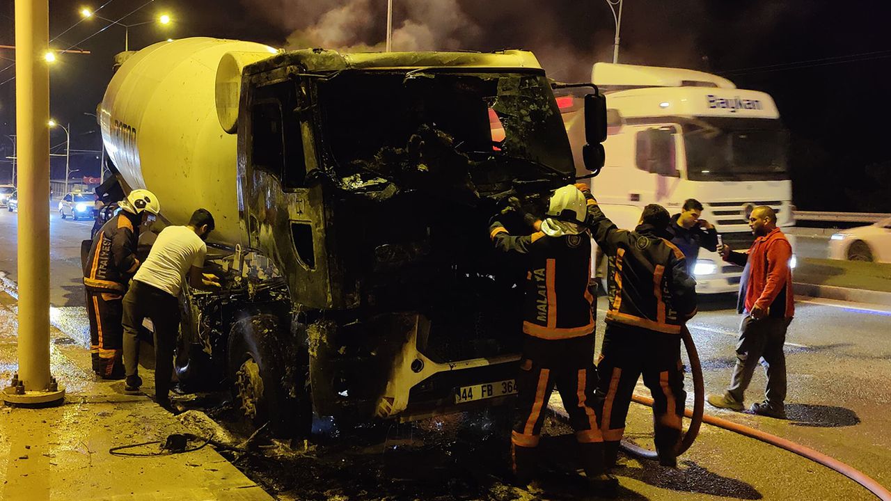 Edinilen bilgiye göre, G.Y. idaresindeki 44 FB 364 plakalı beton mikseri, henüz bilinmeyen bir nedenden dolayı alev aldı.