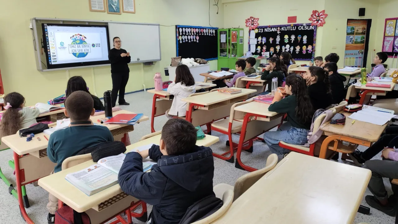 Öğrencilere, günlük yaşamda sıfır atık uygulamalarıyla nasıl çevreye daha az zarar verilebileceği anlatıldı. Gerçekleştirilen eğitimlerde, özellikle okullarda yapılması gereken atık yönetimi çalışmaları ve geri dönüşüm uygulamaları vurgulandı. Atıkların geri dönüşüme gönderilerek döngüsel ekonomiye katkı sağlandığı, 1 ton kağıt atığın geri dönüşümüyle 17 ağacın kesilmekten kurtarıldığı bilgisi verildi.