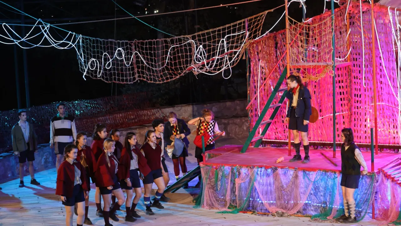 Ocak ayından bu yana süren yoğun eğitim sürecinin ardından sahneye çıkan genç oyuncular, uçak kazası sonucu ıssız bir adaya düşen çocukların uygarlıktan uzak kaldıkça içlerindeki ilkel dürtülerle yüzleşmelerini konu alan oyunu etkileyici bir performansla sundu.
