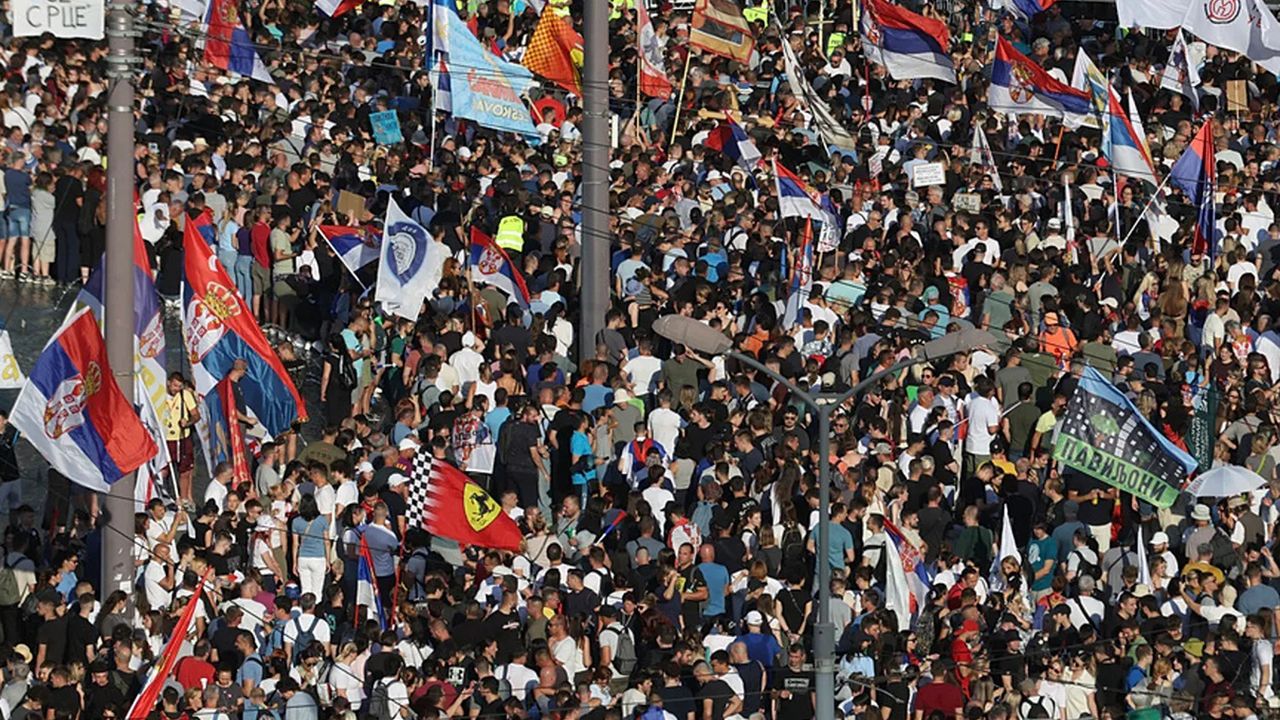 Sırbistan’da binlerce hükümet karşıtı protestocu yeniden sokaklara çıktı.