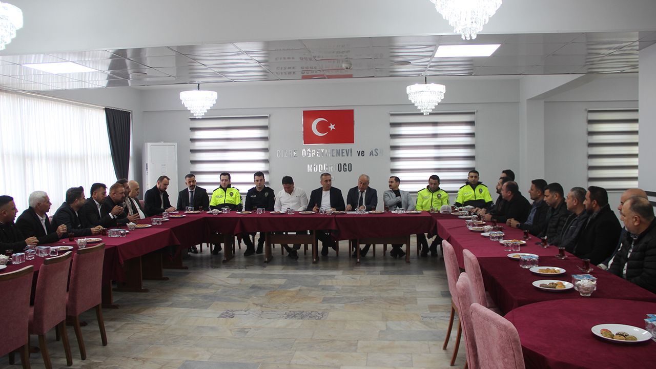Şırnak İl Emniyet Müdürlüğü tarafından Cizre Öğretmen Evinde düzenlenen toplantıda Şırnak İl Emniyet Müdürü Volkan Sazak ve Cizre İlçe Emniyet Müdürü Emre Tufan, merkez mahalle muhtarları ile bir araya gelip, ilçenin sorunlarını mahalle muhtarlarından dinledi.