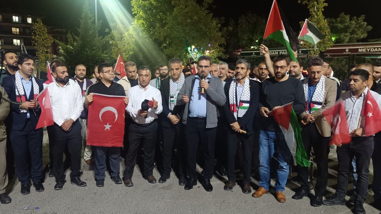 Şırnak Cumhuriyet Meydanı'ndan tüm dünyaya haykırdıklarını söyleyen Abdullah Çatı, "Kahrolsun işgalci siyonizm, kahrolsun zulüm düzeni, yaşasın direniş, yaşasın özgür Filistin. Bugün buradan güçlü bir şekilde haykırıyoruz, Filistin özgür olana dek, Kudüs bağımsız olana dek, zalimler hesap verene dek meydanlardayız. Aziz kardeşlerimiz, bu çağrı sadece bir dayanışma değil aynı zamanda bir izzet çağrısıdır. Adalet için, insanlık için, ümmetin onuru için buradayız. Bizim mücadelemiz hak mücadelesidir, bizim haykırışımız zalimlerin korkusudur.unutmayalım: Zulüm ile abad olanın sonu berbat olacaktır! Unutmayalım, her Firavun’un bir Musa’sı vardır! Unutmayalım, Filistin’in yarını özgür, Kudüs’ün geleceği aydınlık olacaktır! Şırnak halkı olarak, kardeşlerimizle omuz omuza, Sumud’un yanında, Filistin’in davasının yanındayız. Tekrar haykırıyoruz, yaşasın özgür Filistin. Kahrolsun işgal ve zulüm! Kudüs bizimdir, ümmetindir, insanlığındır." dedi.