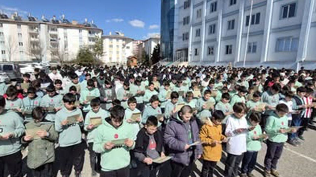 Sivas Uluslararası İmam Hatip Lisesi'nde 302 öğrenci bir araya gelerek Kur'an-ı Kerim'i 1 dakikada hatmetti.
