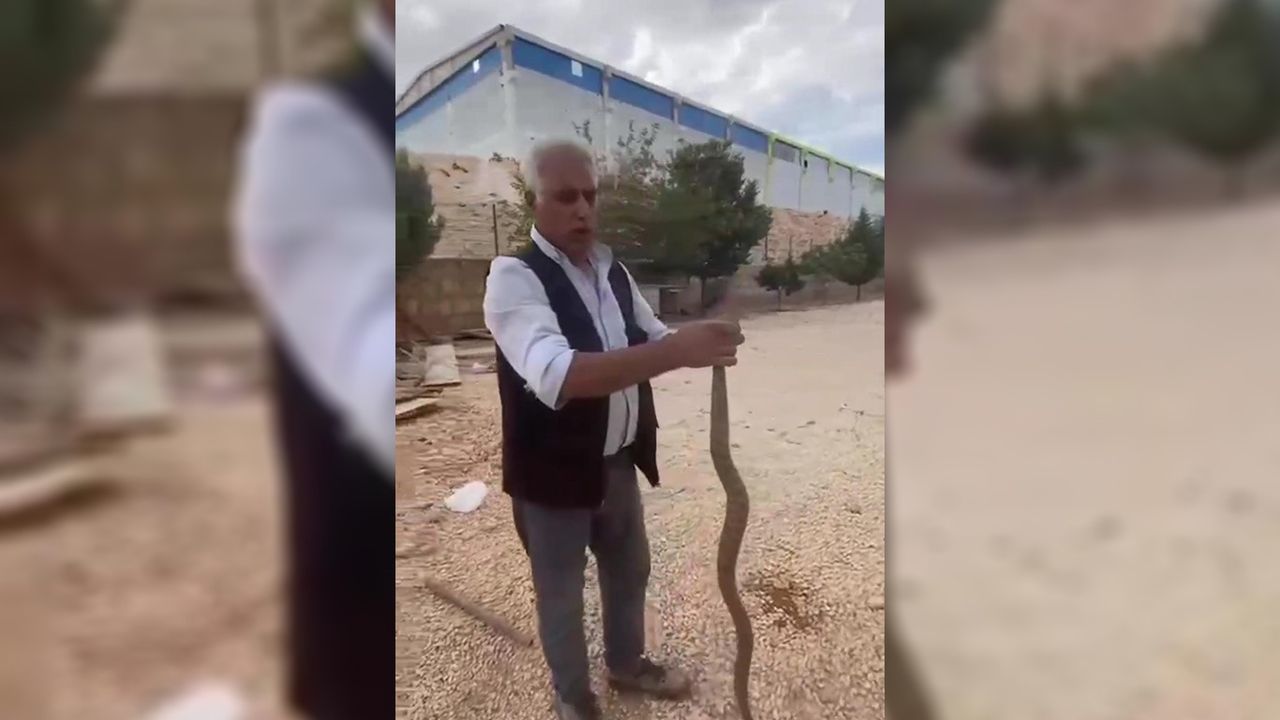 Tavuklarının eksilmesinden şüphelenen vatandaş, bahçesinde yakaladığı yılanı elleriyle tutarak kameraya aldı ve görüntüleri sosyal medyada paylaştı.