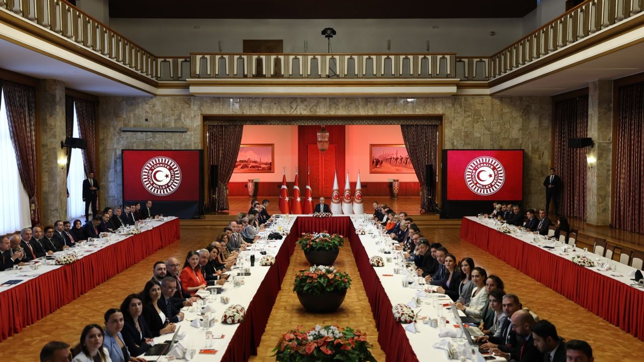 TBMM Başkanı Numan Kurtulmuş, TBMM Tören Salonunda düzenlediği 28. Dönem 3. Yasama Yılı Değerlendirme Toplantısı’nda, gazete, televizyon ve ajansların parlamento muhabirleriyle bir araya geldi.