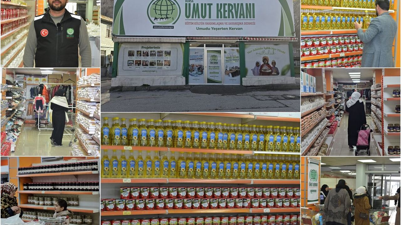 Umut Kervanı Bursa Derneği, yürüttüğü "Sosyal Market Projesi" kapsamında yeni yılın ilk ayında yüzlerce ihtiyaç sahibi aileye destek ulaştırdı. Yardımlar, gıda başta olmak üzere temel ihtiyaç ürünlerini kapsarken, ailelerin kendi ihtiyaçlarını özgürce temin edebilmesine imkân sağlayan sosyal market modeliyle gerçekleştirildi.