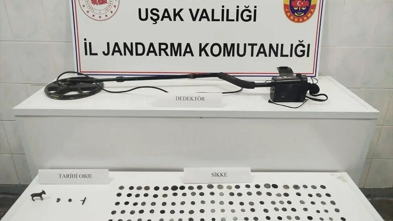 Aramada, farklı dönemlere ait 161 sikke, yüzük ve kolye ucu gibi 7 tarihi obje ile 1 dedektör ele geçirildi.