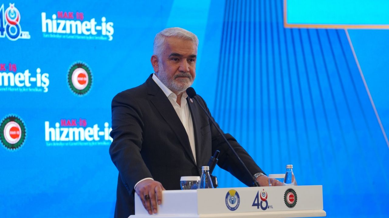 Yapıcıoğlu, davet ettiklerinden dolayı HAK-İŞ ve Hizmet-İş Sendikası Genel Başkanı Mahmut Arslan'a teşekkür etti. (İLKHA)