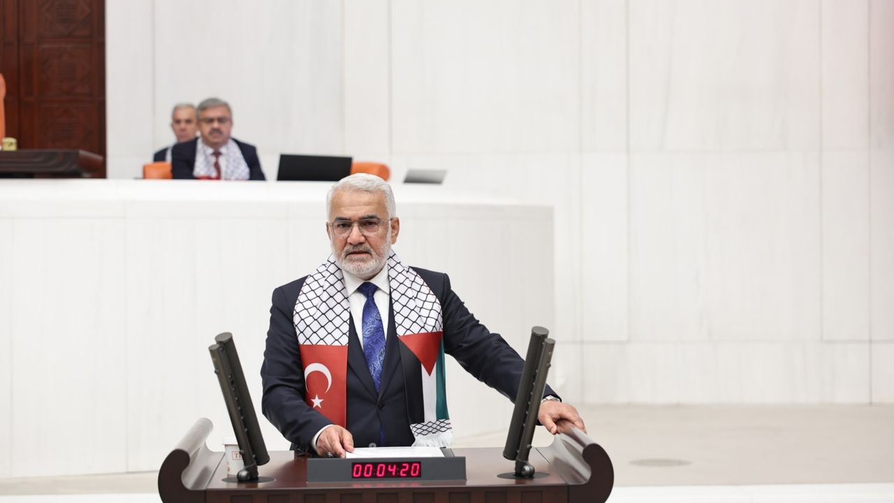 Yapıcıoğlu, "Sayın milletvekilleri, 1917’den beri işgal altında olan Filistin, son iki yıldır tarihin gördüğü en barbar saldırılarından birini yaşıyor. Siyonist terör örgütünün saldırıları sadece masum Filistinlilere yönelik değildir; tüm insani değerlere yöneliktir. Bütün bu insani değerler; hukuk, hakkaniyet, adalet ve merhamet, bugün çok vahşi bir saldırı altındadır. Gerçekten yaşanan vahşeti anlatmaya kelimeler yetmez. Her gün açlıktan ve susuzluktan dolayı beşer onar çocuk ölüyor. Açlıktan derisi kemiğine yapışmış masum çocukların görüntüsü, yürekleri yakıyor. Bütün dünya lanetliyor ama lanet olası zalimlereh soykırımı devam ediyor. İnsanlar kınıyor, STK’lar yürüyüş yapıyor, hükümetler şiddetle kınıyor, Birleşmiş Milletler kınıyor. Uluslararası Adalet Divanı ve Uluslararası Ceza Mahkemesi yargılama yapıyor, tedbir kararları alıyor ama soykırım durdurulamıyor." dedi.