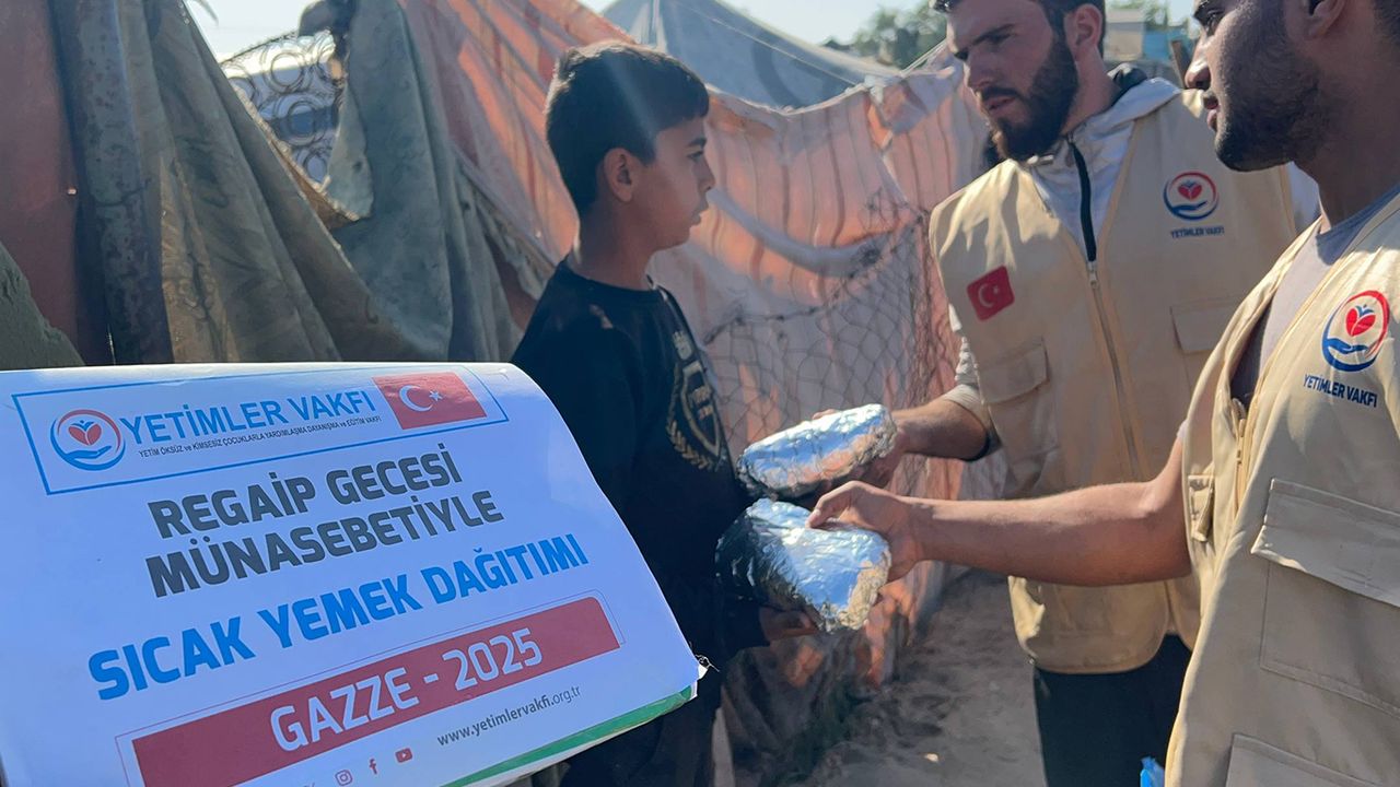 Yetimler Vakfı, üç ayların başlangıcı olan Regaip Kandilinde Gazzeli Müslümanların bir nebze de olsa o manevi atmosferi hissedebilmeleri amacıyla sıcak yemek dağıtımında bulundu.
